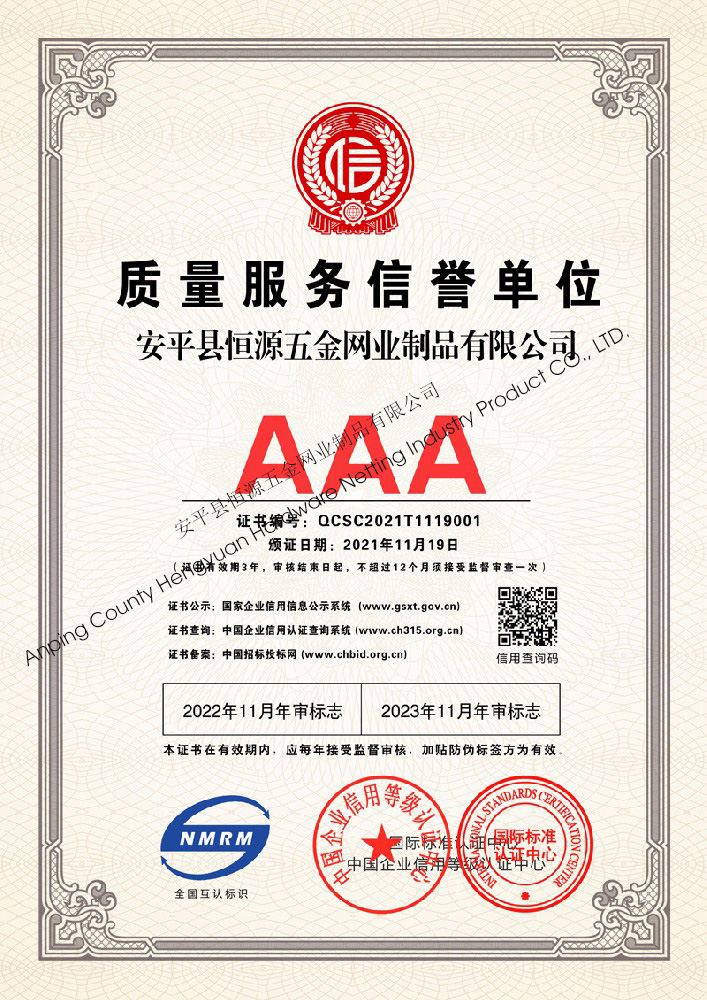 多年來,安平縣恒源五金網(wǎng)業(yè)制品有限公司堅(jiān)持“科技興企、質(zhì)量立業(yè)”的經(jīng)營理念和“誠心為本、客戶至上”的合作宗旨,優(yōu)化生產(chǎn)工藝,打造優(yōu)質(zhì)產(chǎn)品,提供完善的服務(wù),受到國內(nèi)外客戶的一致好評,產(chǎn)品行銷全國各地,并出口美國、德國、韓國、日本、臺灣等國家和地區(qū)。